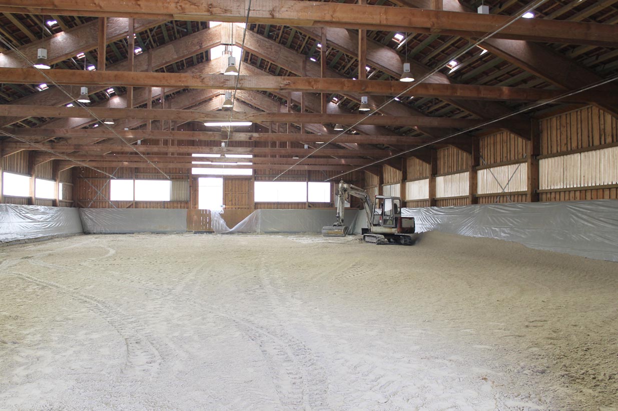 Seit dem 30. März 2016 haben wir einen neuen Hallenboden. Dieser wurde vom Reitverein großzügig finanziell unterstützt. Um den Reitbetrieb möglichst wenig zu stören, ging die Totalsanierung innerhalb von zwei Tagen (und Nächten!) von statten, durchgeführt von Joachim Ohm-Winter. Wir freuen uns mit unseren Pferden über das tolle Ergebnis!