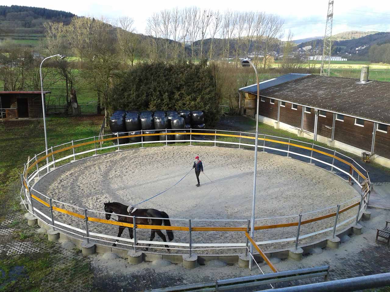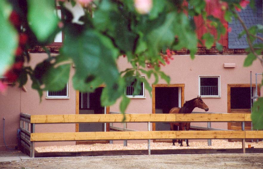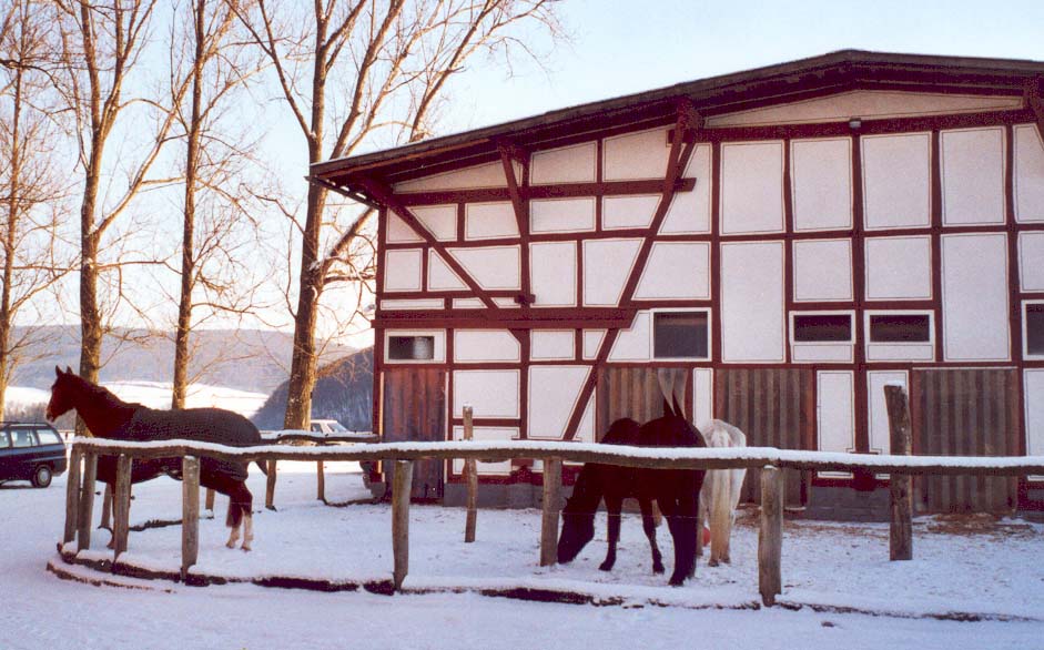 Wir haben Platz für 35 Pferde und Ponys in 23 Paddock-Boxen und zwölf Innenboxen mit neun zugehörigen Ganztags-Winterausläufen.